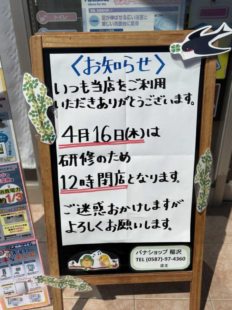 2026年4月16日(木)昼から研修のため閉店させていただきます。 17日(金)は朝9時より通常営業となります。 ご迷惑おかけ致しますがよろしくお願いいたします。 お知らせ URLをコピーしました! 店内のご紹介&お子さまイベント 関連記事 カメラ付きドアホンキャンペーン3月最終月!! 2026年3月4日 年末年始休業日のお知らせ 2025年12月27日 11月12日(水) 補聴器相談会 2025年11月4日 美容&健康 おすすめ商品✨ 2025年10月20日 10月いっぱいお買得商品のご案内 2025年10月11日 補聴器相談会 2025年10月2日 短縮営業のお知らせ 2025年9月17日 夏季休業日のお知らせ 2025年8月3日